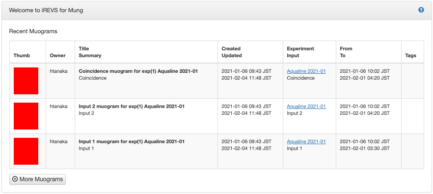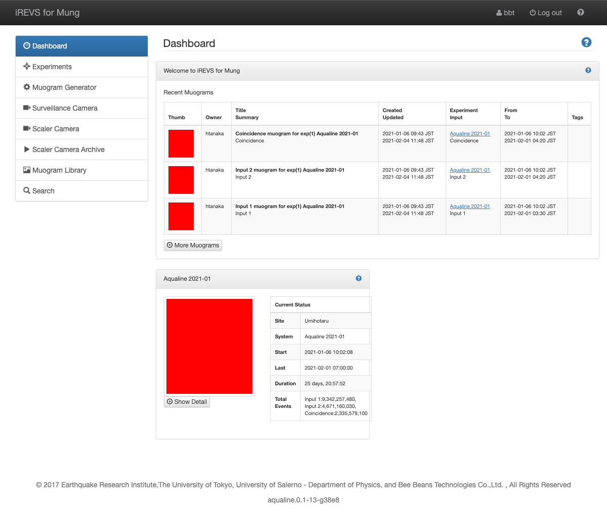 On the dashboard, it is displayed that recently created muogram and the overview of experiments.