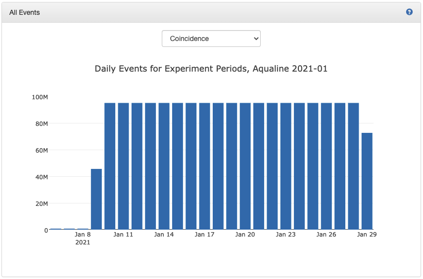 All events panel shows the number of events over the entire period of the corresponding experiment with a bar graph. Events are counted par day.