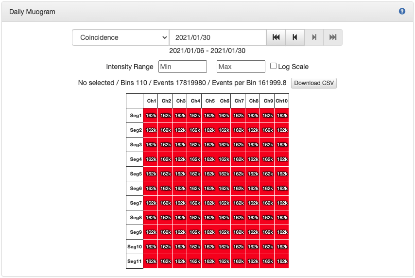 About Intensity Range, Log Scale, Download CSV, refer to Muogram Generator>Intensity Range.